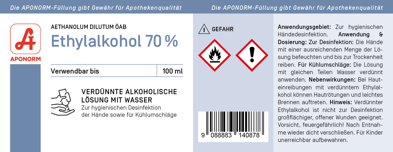 Eigenschaften "Flaschenhaftetiketten verd. Ethylalkohol 70% 100ml"