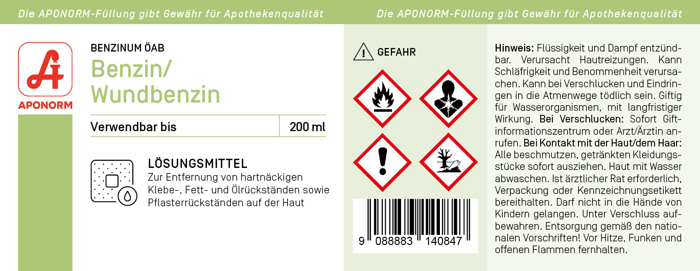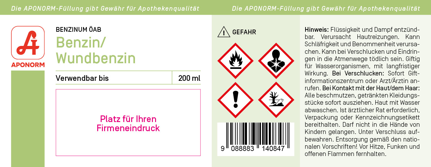 Produktinformationen "Flaschenhaftetiketten Benzin/Wundbenzin 200 ml"